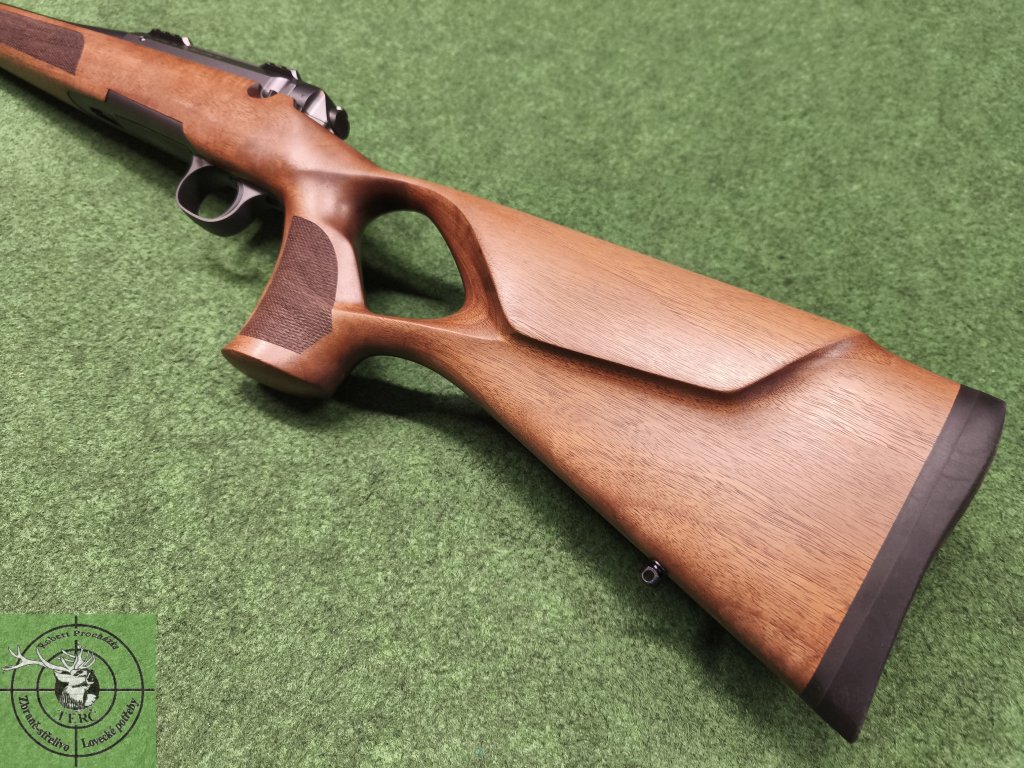 Pažby mohou být ořechové (lakované nebo matné). Kromě klasické varianty a varianty s lícnicí jsou dostupné i oblíbené thumbhole pažby. Pro střelce, kteří vyžadují maximální odolnost a nízkou hmotnost výrobce dodává syntetické pažby ve třech barevných provedeních: oranžová, zelená a černá. Dík tomu si každý střelec vybere pažbu, která mu opravdu sedne do ramene. Samozřejmostí je provedení pažby i závěru pro leváky i praváky.