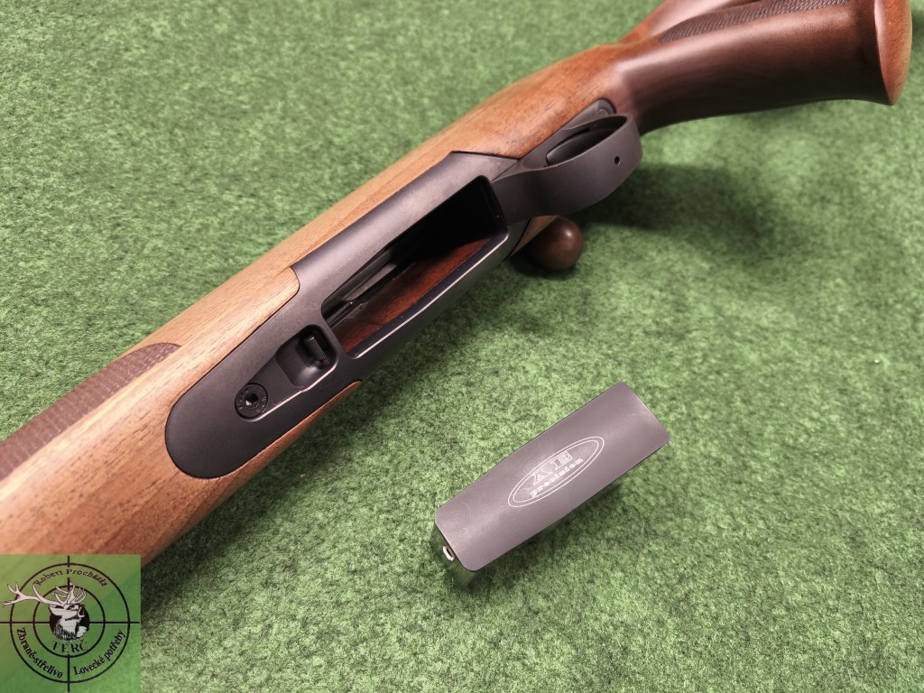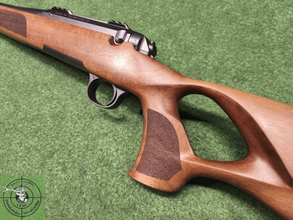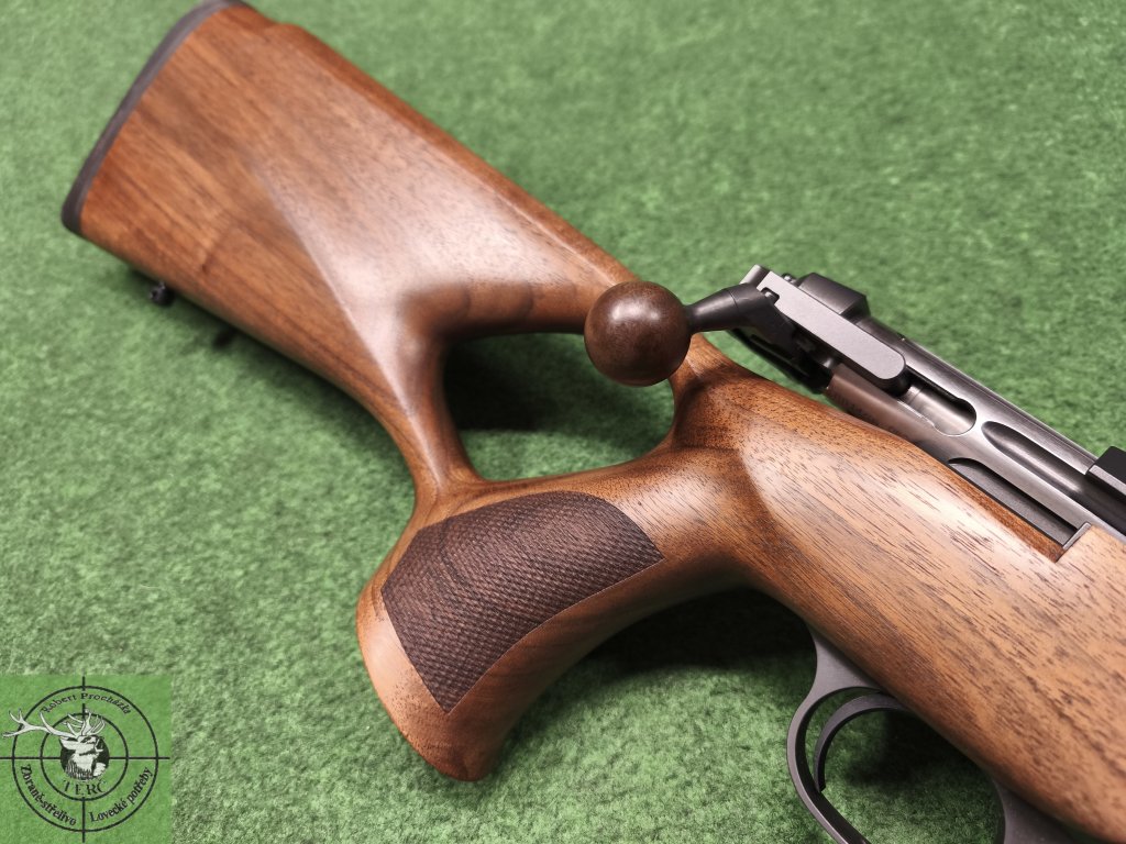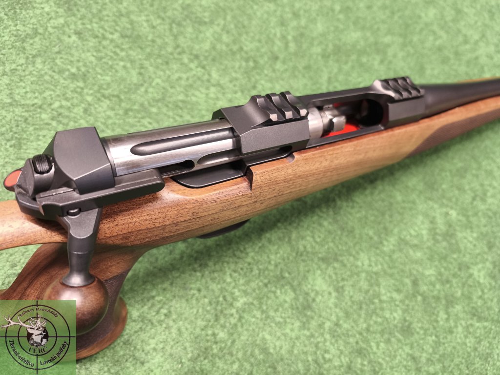 Vychutnejte si neuvěřitelně hladké a extrémně rychlé nabíjení díky přímotažnému závěru. Ten se pohybuje pouze v ose střelby, není ho tedy potřeba dalším pohybem uzamykat jako u běžného systému Mauser. Pětiranný zásobník tedy zvládnete vystřílet velmi rychle. Bezpečnost zaručují tři uzamykací ozuby.