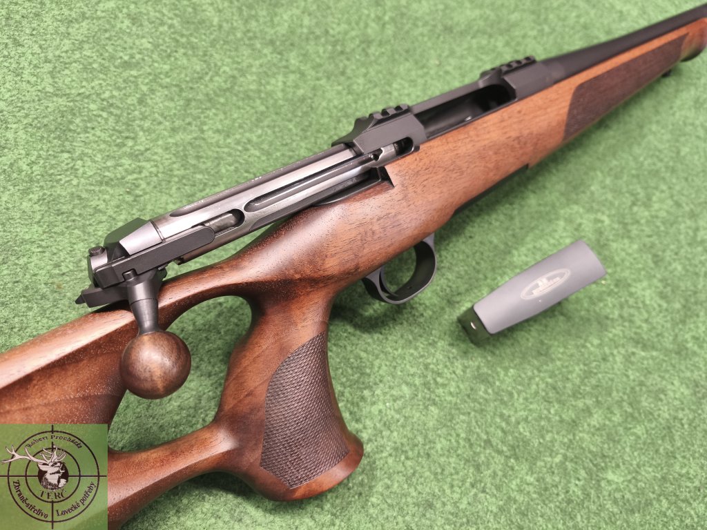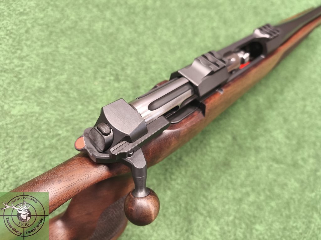 Vychutnejte si neuvěřitelně hladké a extrémně rychlé nabíjení díky přímotažnému závěru. Ten se pohybuje pouze v ose střelby, není ho tedy potřeba dalším pohybem uzamykat jako u běžného systému Mauser. Pětiranný zásobník tedy zvládnete vystřílet velmi rychle. Bezpečnost zaručují tři uzamykací ozuby.
