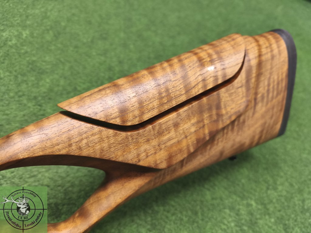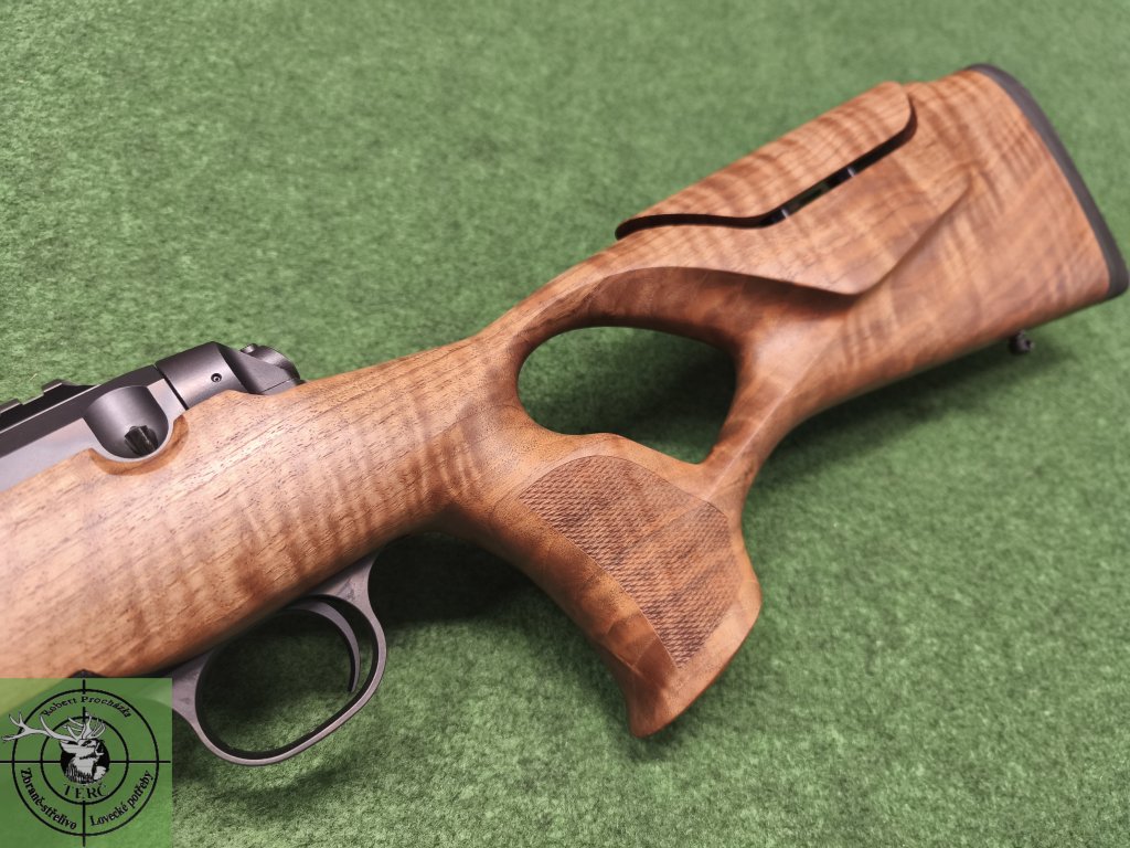 Pažby mohou být ořechové (lakované nebo matné). Kromě klasické varianty a varianty s lícnicí jsou dostupné i oblíbené thumbhole pažby. Pro střelce, kteří vyžadují maximální odolnost a nízkou hmotnost výrobce dodává syntetické pažby ve třech barevných provedeních: oranžová, zelená a černá. Dík tomu si každý střelec vybere pažbu, která mu opravdu sedne do ramene. Samozřejmostí je provedení pažby i závěru pro leváky i praváky.