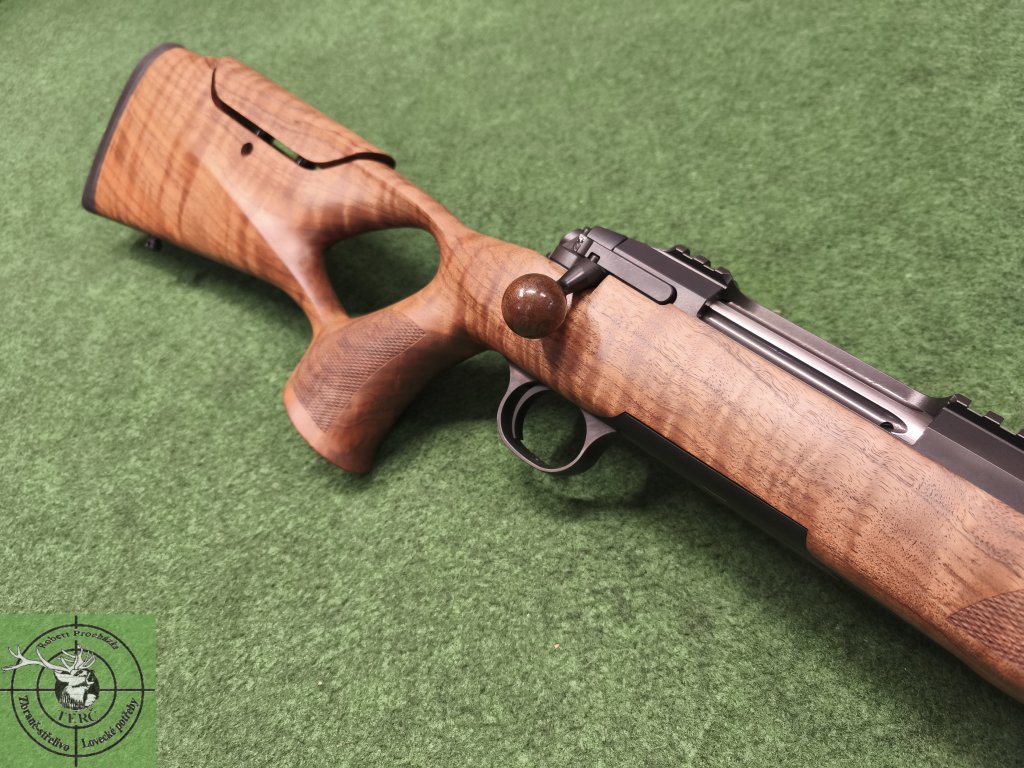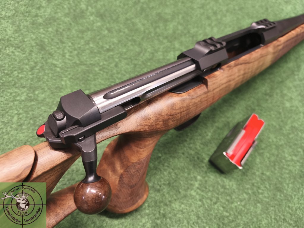 Vychutnejte si neuvěřitelně hladké a extrémně rychlé nabíjení díky přímotažnému závěru. Ten se pohybuje pouze v ose střelby, není ho tedy potřeba dalším pohybem uzamykat jako u běžného systému Mauser. Pětiranný zásobník tedy zvládnete vystřílet velmi rychle. Bezpečnost zaručují tři uzamykací ozuby.