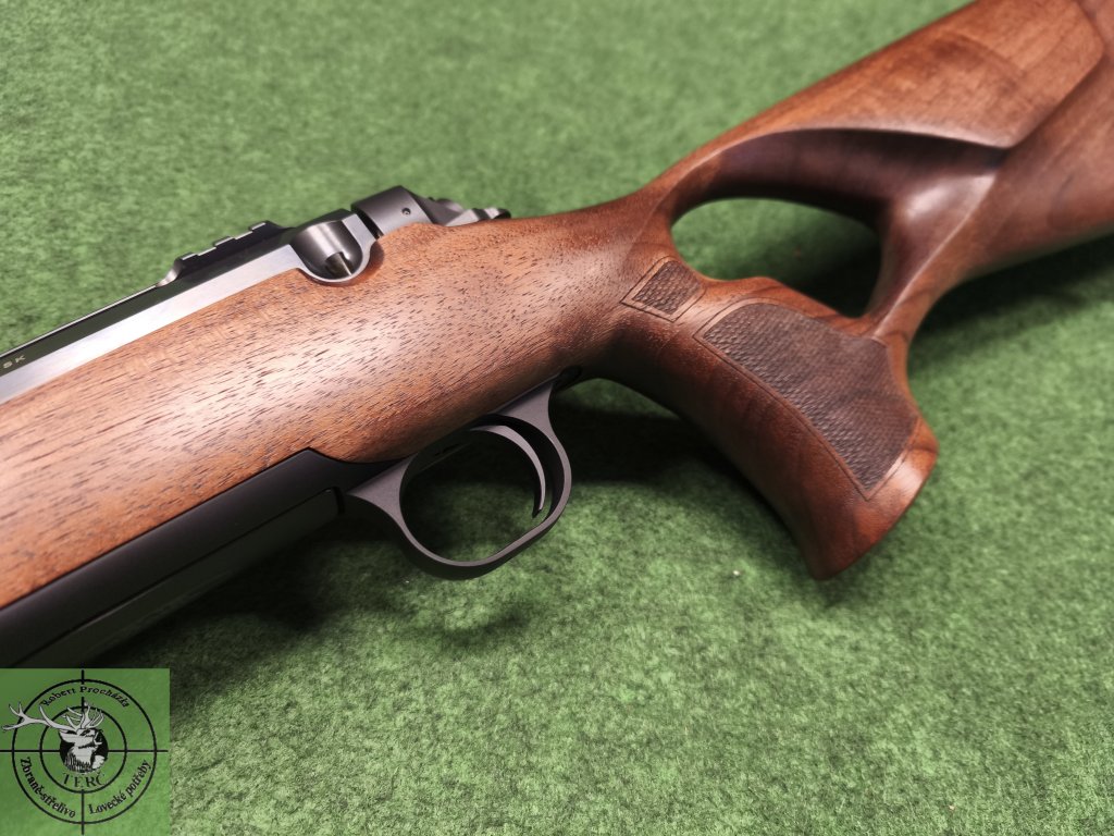 Vychutnejte si neuvěřitelně hladké a extrémně rychlé nabíjení díky přímotažnému závěru. Ten se pohybuje pouze v ose střelby, není ho tedy potřeba dalším pohybem uzamykat jako u běžného systému Mauser. Pětiranný zásobník tedy zvládnete vystřílet velmi rychle. Bezpečnost zaručují tři uzamykací ozuby.