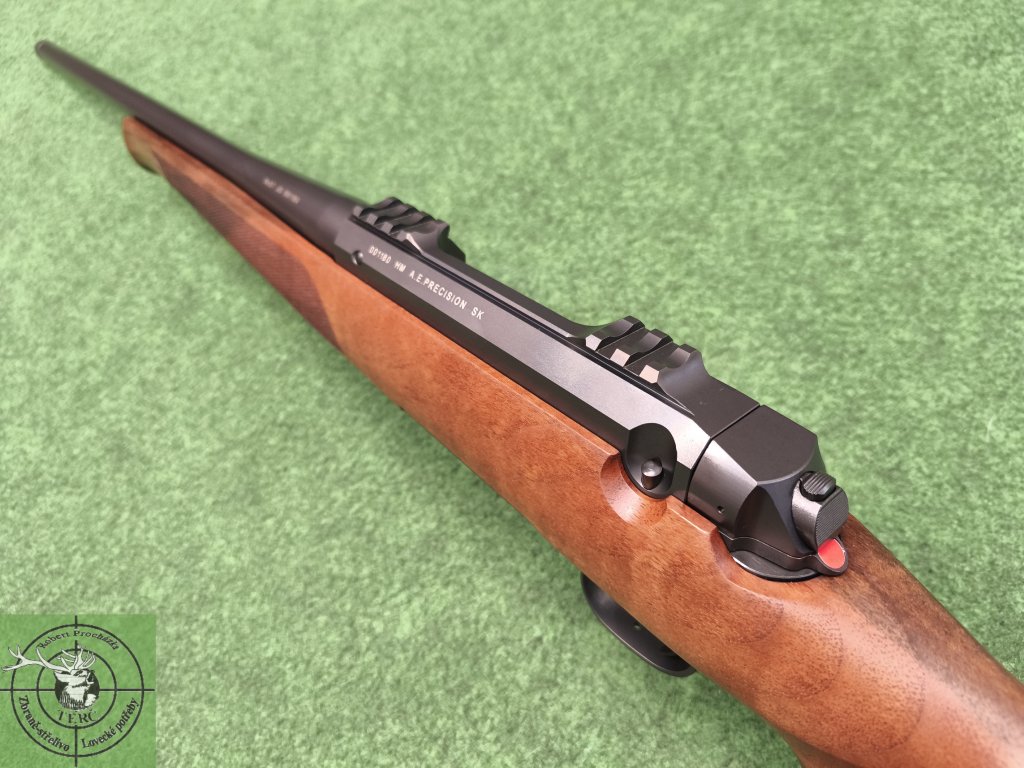 Opakovací kulovnice s přímotažným závěrem z dílny slovenského výrobce AE Precision se vyznačuje precizním zpracováním, neuvěřitelně rychlým a hladkým chodem závěru a subMOA přesností. Puška dosahuje rozptylu 21 - 27 mm na 100 m i po 2 500 ranách, a to díky špičkové hlavni z produkce německé firmy Lothar Walther.