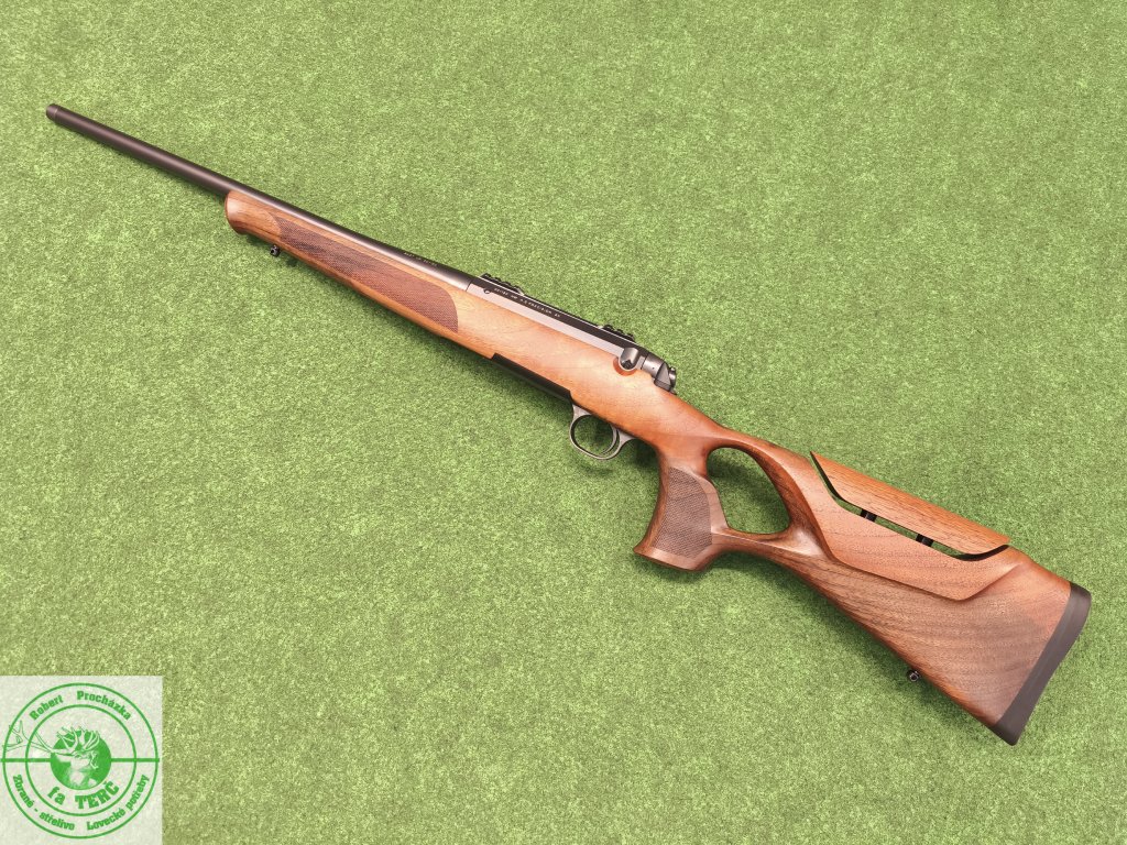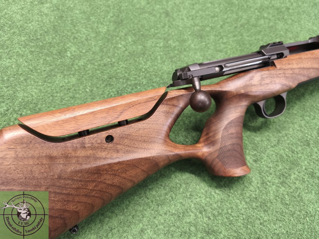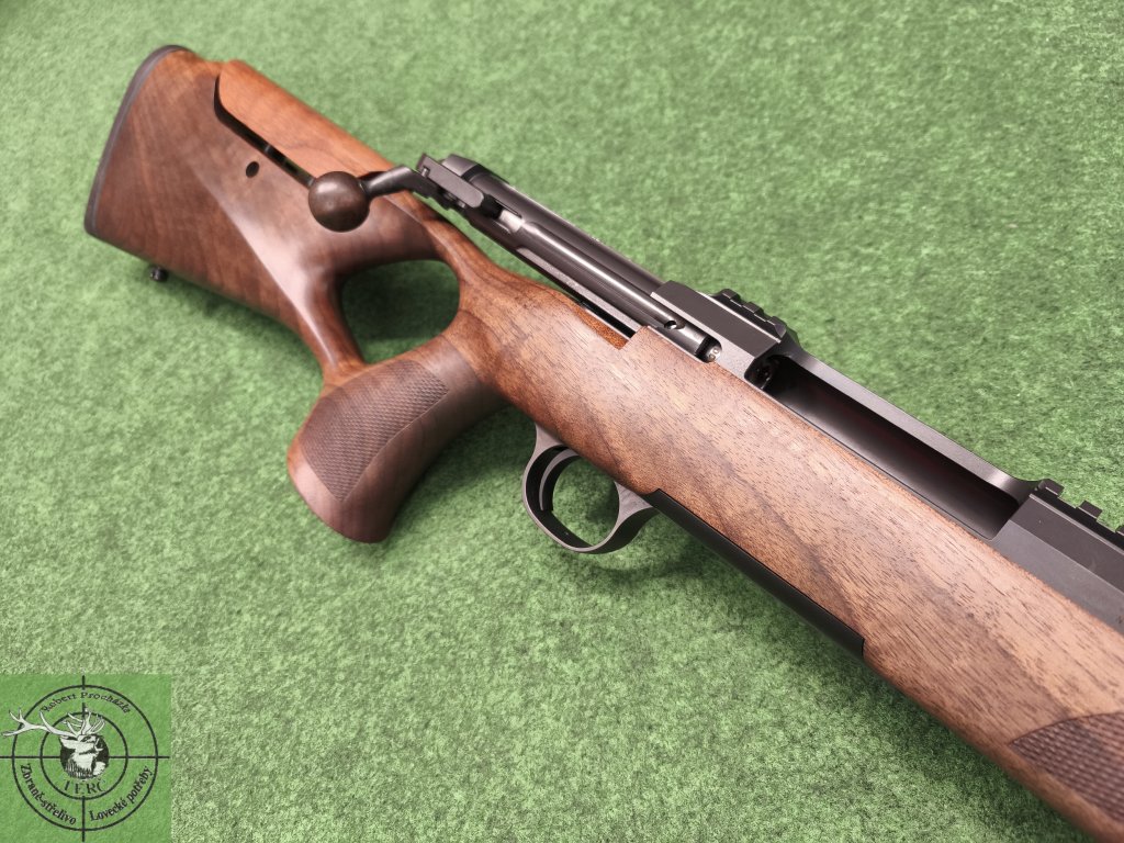 Vychutnejte si neuvěřitelně hladké a extrémně rychlé nabíjení díky přímotažnému závěru. Ten se pohybuje pouze v ose střelby, není ho tedy potřeba dalším pohybem uzamykat jako u běžného systému Mauser. Pětiranný zásobník tedy zvládnete vystřílet velmi rychle. Bezpečnost zaručují tři uzamykací ozuby.