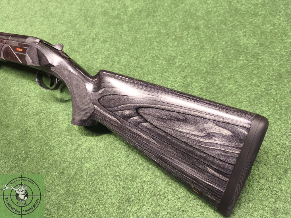 - Moderní dvoubarevná pažba z laminovaného březového dřeva v šedé barvě