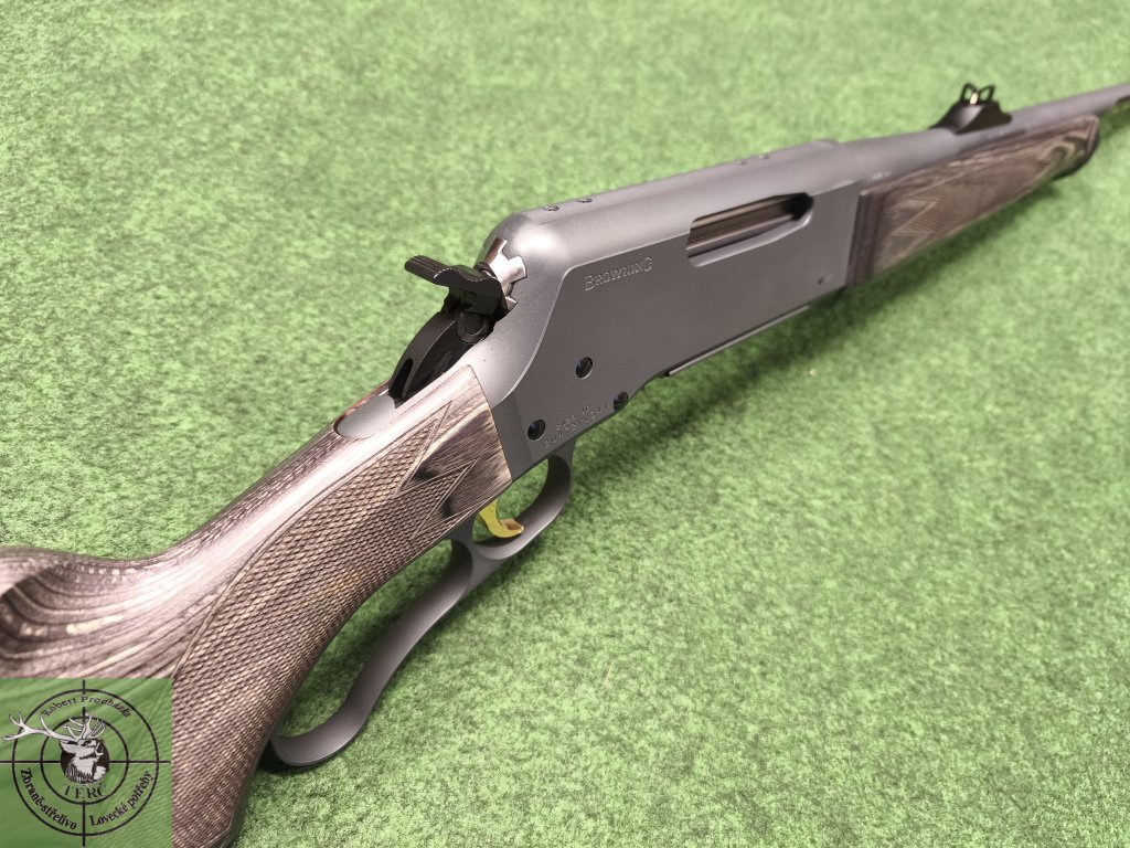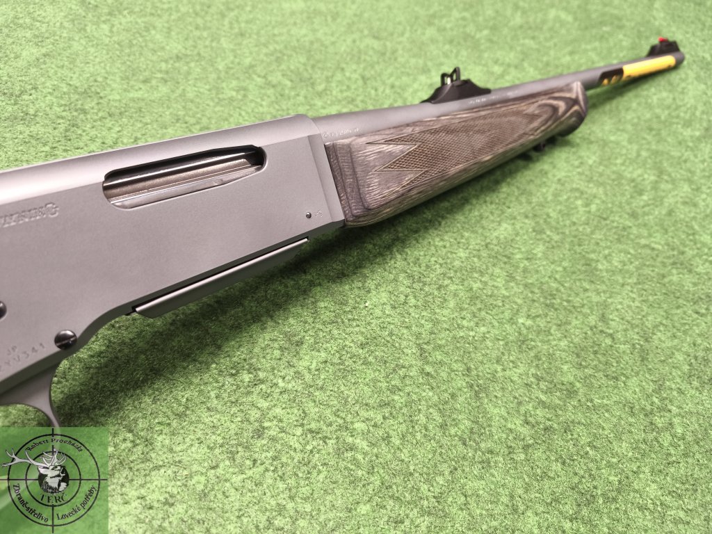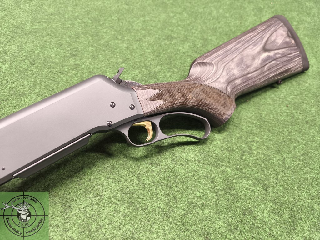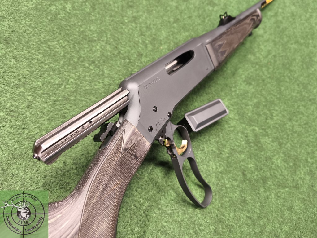 Tato šedá páková puška je dodávána s pažbou z laminované překližky a byla ošetřena novou ultra pevnou povrchovou úpravou „Cerakote“ pro bezkonkurenčně dlouhou životnost. Mířidla a krátká hlaveň z něj dělají vynikající zbraň pro řízené lovy a stopování.