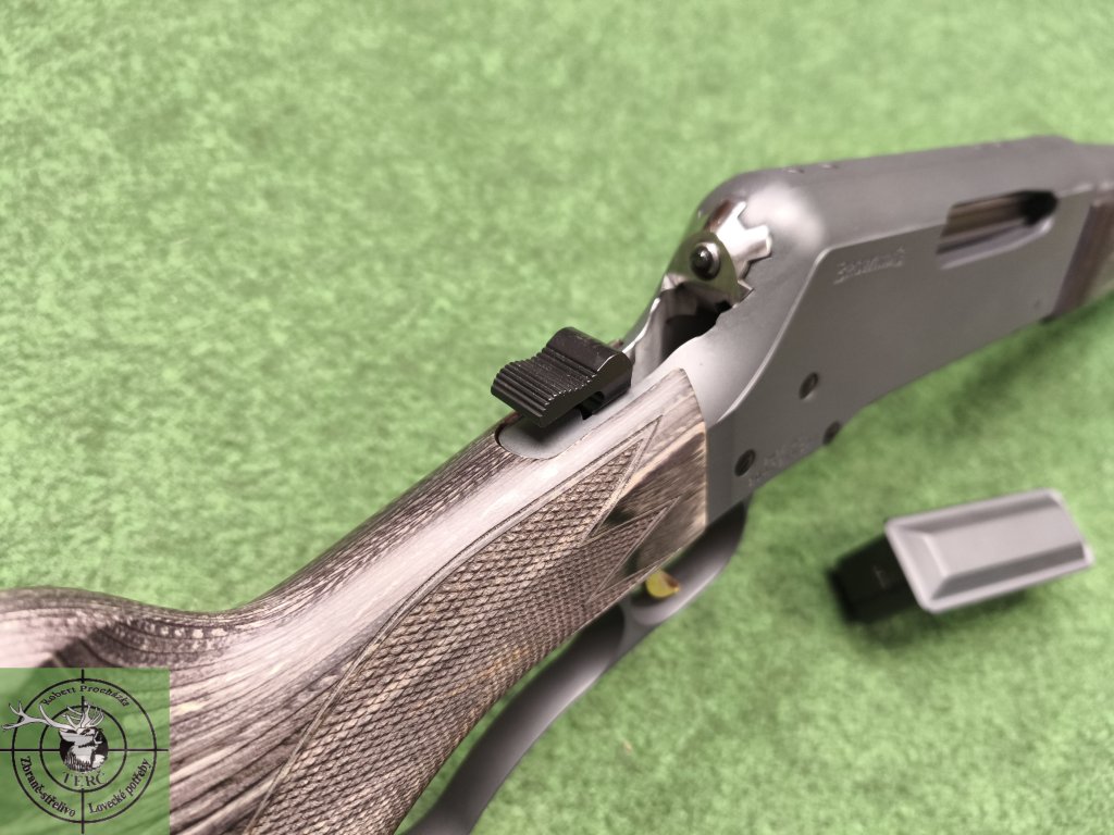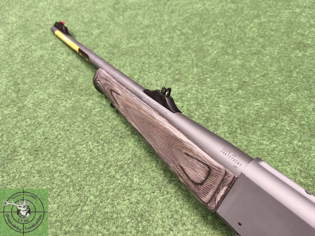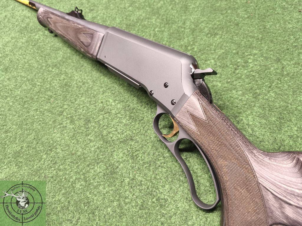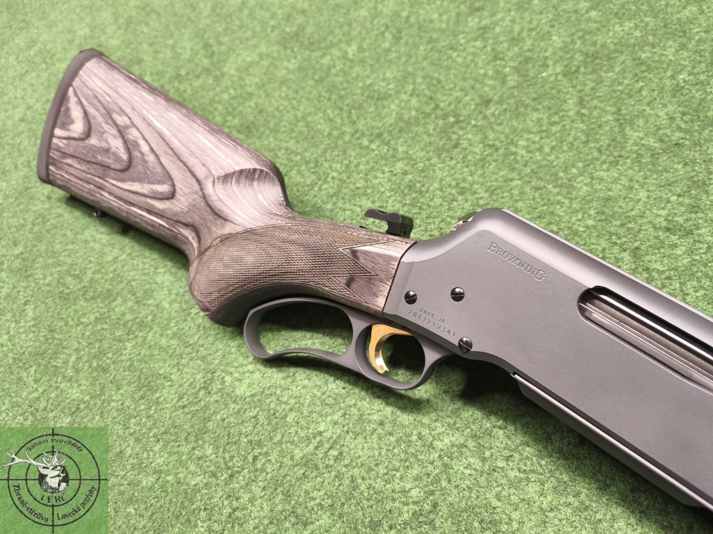 Tato šedá páková puška je dodávána s pažbou z laminované překližky a byla ošetřena novou ultra pevnou povrchovou úpravou „Cerakote“ pro bezkonkurenčně dlouhou životnost. Mířidla a krátká hlaveň z něj dělají vynikající zbraň pro řízené lovy a stopování.