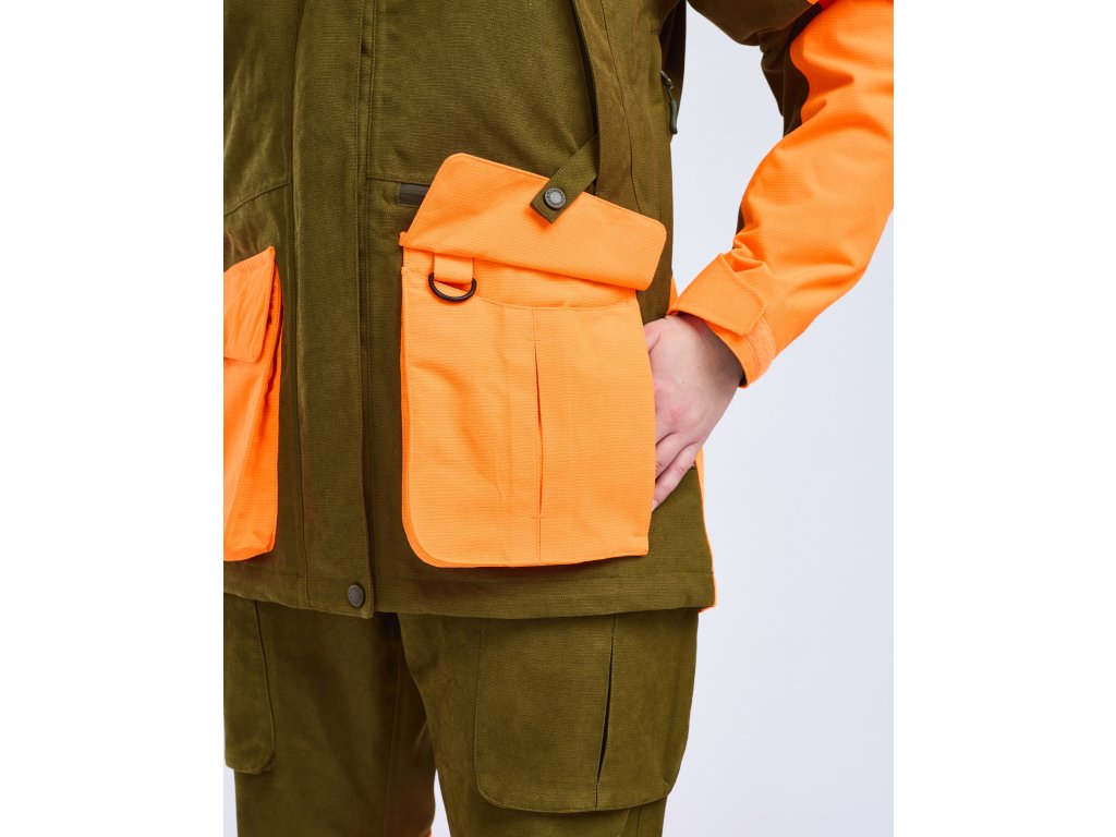 Bunda má fleecem podšité kapsy na zahřátí rukou, dvojité kapsy na vysílačku, kapsu na GPS a loveckou kapsu přístupnou z pravé strany. Přední kapsy mají magnetické klopy a rozšířenou konstrukci, navíc s chytrým poutkem na knoflík, který je udrží otevřené. Levá kapsa je navíc vybavena D-kroužkem. Nechybí ani vnitřní kapsa a bezpečná kapsa na zip.
