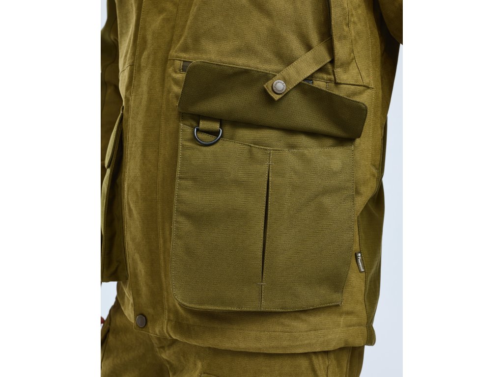 Bunda má fleecem podšité kapsy na zahřátí rukou, dvojité kapsy na vysílačku, kapsu na GPS a loveckou kapsu přístupnou z pravé strany. Přední kapsy mají magnetické klopy a rozšířenou konstrukci, navíc s chytrým poutkem na knoflík, který je udrží otevřené. Levá kapsa je navíc vybavena D-kroužkem. Nechybí ani vnitřní kapsa a bezpečná kapsa na zip.