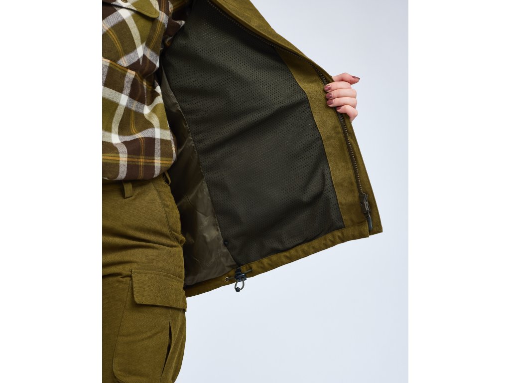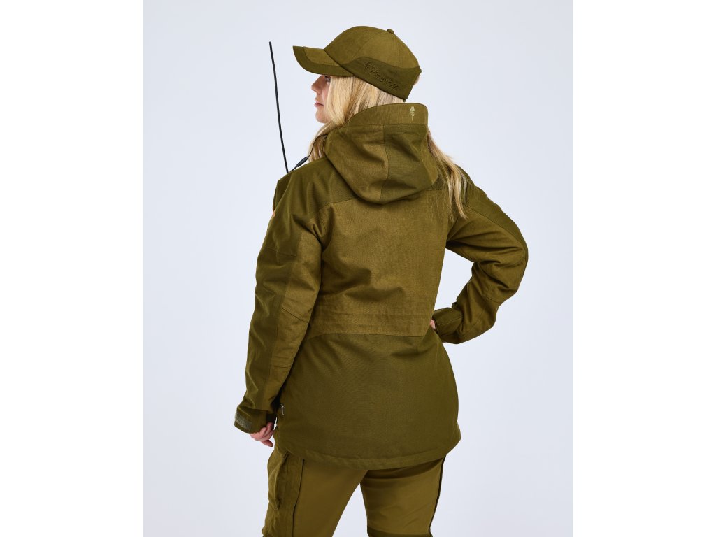 Dámská lovecká bunda odolná proti větru a vodě s vysoce prodyšnou síťovanou podšívkou a bočními větracími zipy pro lepší proudění vzduchu. Vybavená praktickými kapsami, včetně fleecem podšitých kapes na ruce, objemných předních kapes, dvojitých kapes na vysílačku a kapsy na GPS. Ideální pro lovkyně a aktivní psovody.