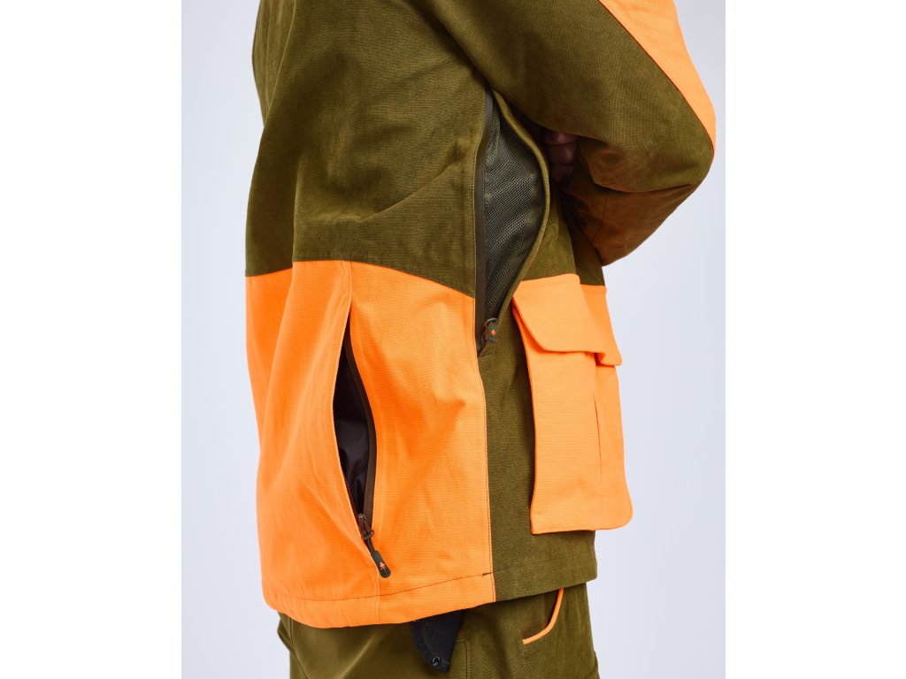 Lovecká bunda odolná proti větru a vodě s vynikající ventilací díky síťované podšívce a bočním větracím zipům. Vybavená praktickými kapsami, včetně fleecem podšitých kapes na ruce, objemných předních kapes, dvojitých kapes na vysílačku a kapsy na GPS – ideální volba pro psovody.