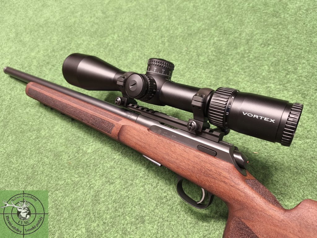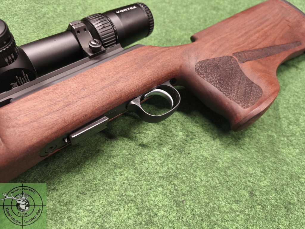 Malorážka s kvalitní hlavní, která zvládá veškeré malorážkové střelivo. Hlaveň se závitem, tedy ideální možnost pořízení tlumiče hluku nebo kompenzátoru. Vynikající spoušťový systém s možností nastavení. Prověřený puškohled Vortex, který se osazuje i na super přesné ostřelovačské pušky, jeho zvětšení 5-25x ti dostatečně zvětší tvůj cíl a manuálně nastavitelná paralaxa tomu dodá ten nejostřejší obraz. Puškohled disponuje balistickými komínky v MRAD stupnici.