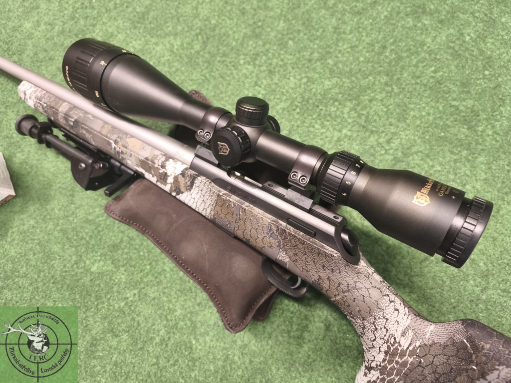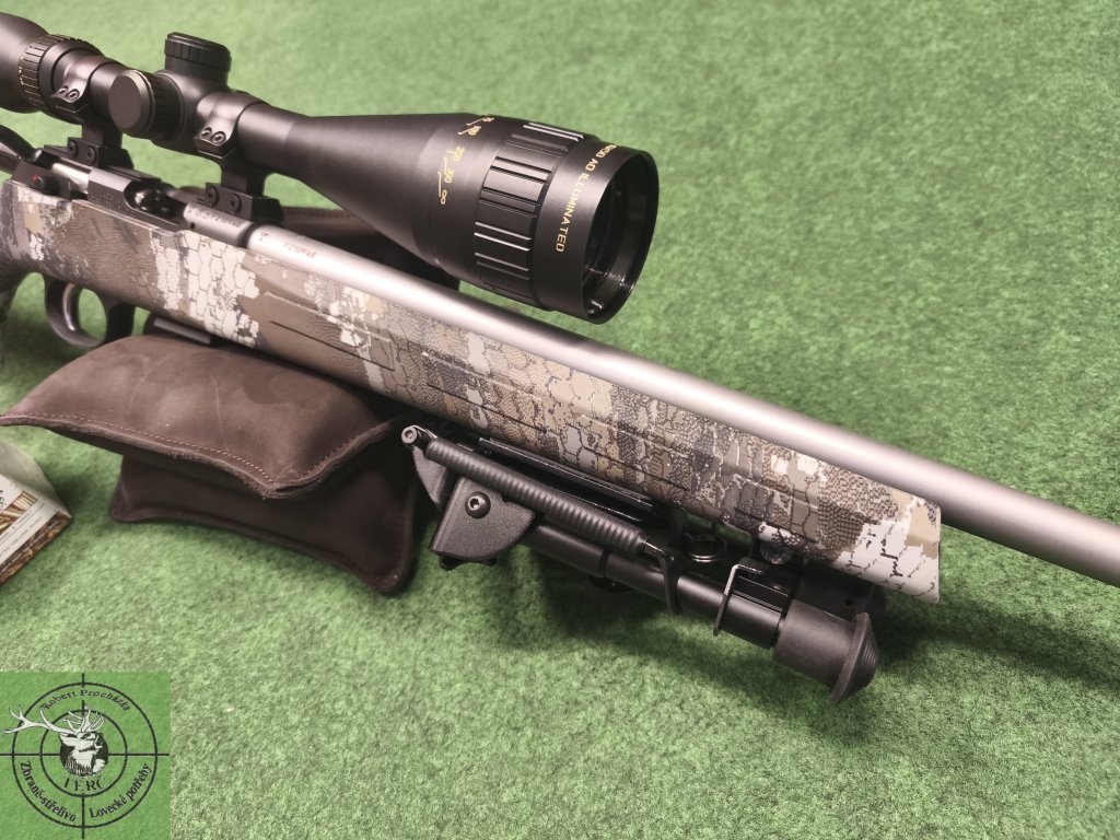 !!PŘIPRAVENÁ SESTAVA!! malorážka České Zbrojovky ve špičkovém designovém provedení v kombinaci s povedenou CAMO synthetickou pažbou a matně stříbrnou hlavní, CZ457 osazena puškohledem Nikko Stirling 4-16x50AO IR (osvětlený kříž) s perfektně ostrým obrazem - variabilní zvětšení poskytne dostatečné zvětšení i na velkých dálkách, stavitelné snímatelné nožičky.