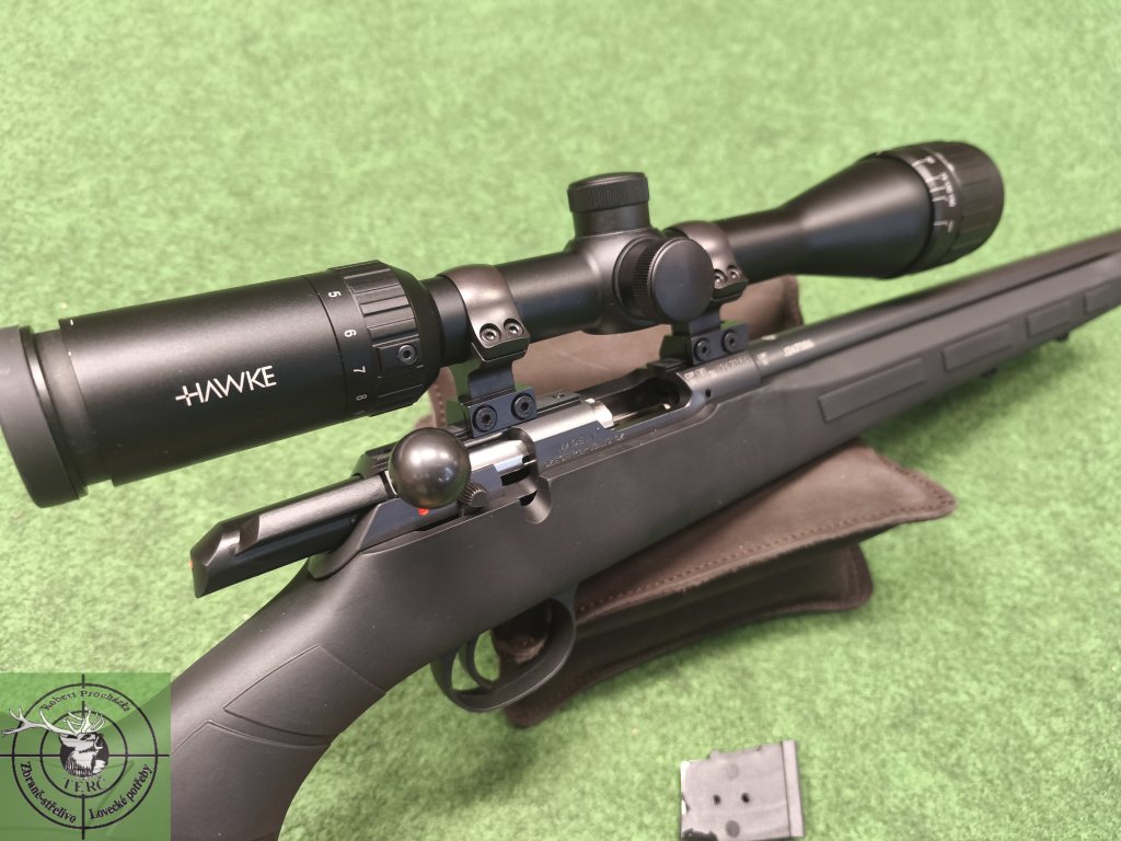 Malorážka s kvalitní hlavní, která zvládá všechno malorážkové střelivo. Hlaveň se závitem, tedy ideální možnost pořízení tlumiče hluku. Vynikající spoušťový systém s možností nastavení. Prověřený puškohled Hawkey, který se osazuje i na velký flinty, jeho zvětšení 4-12x ti dostatečně zvětší tvůj cíl a manuálně nastavitelná paralaxa tomu dodá ten nejostřejší obraz.