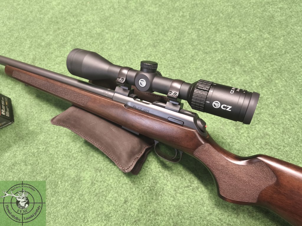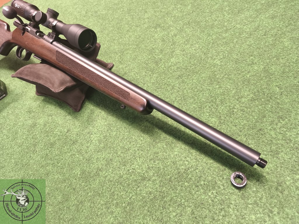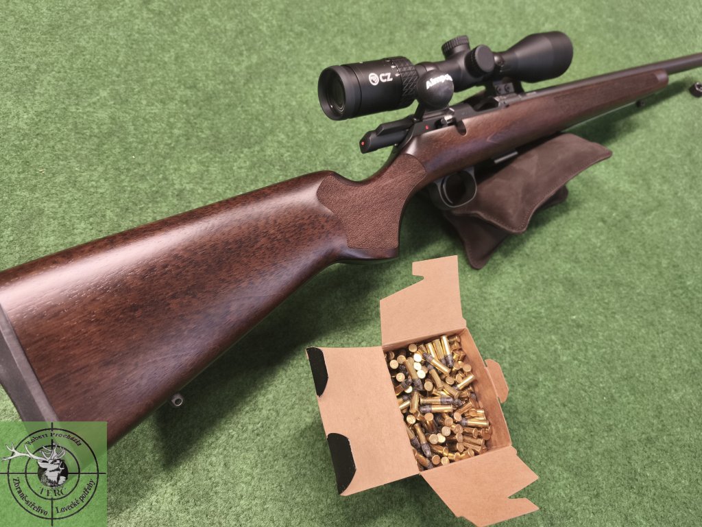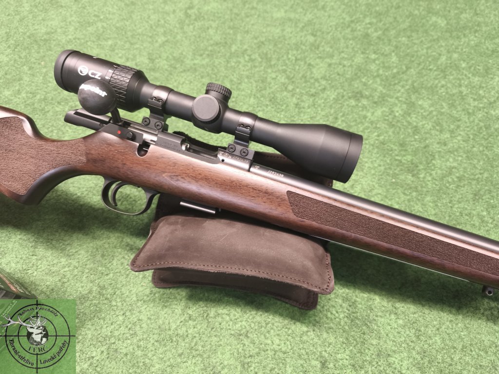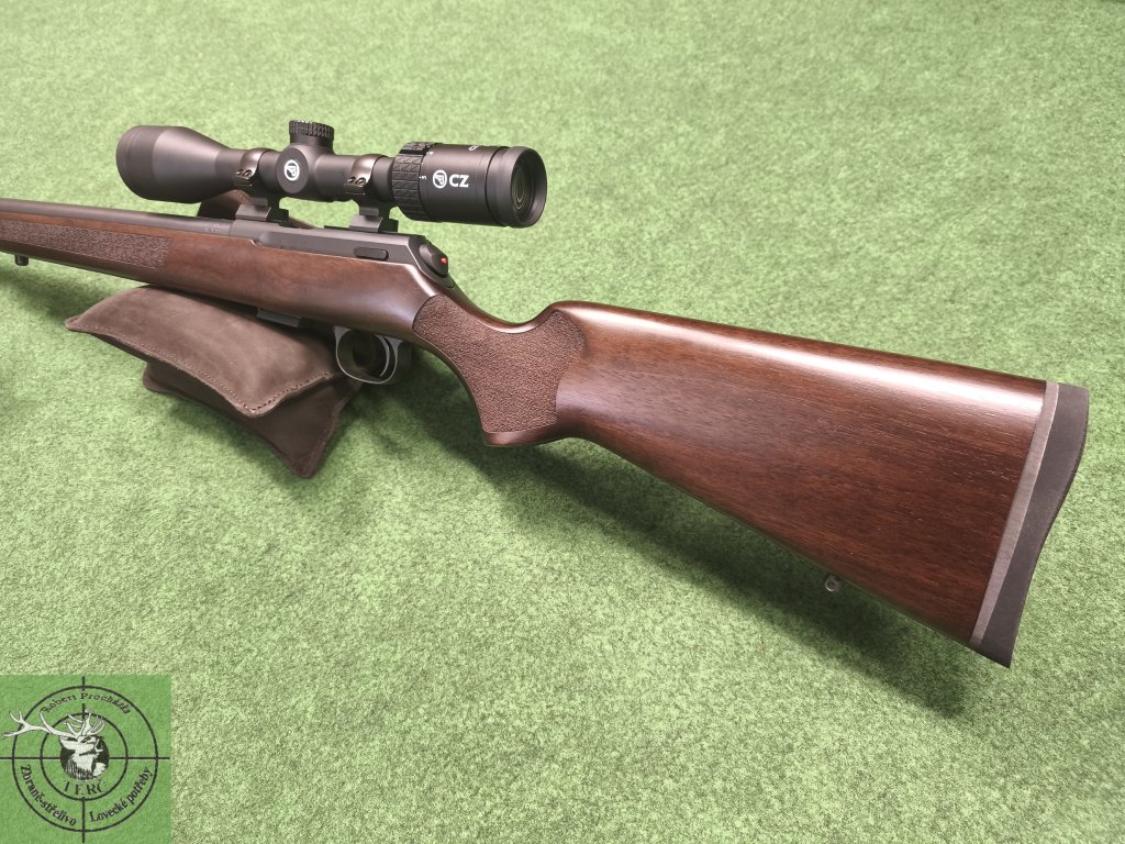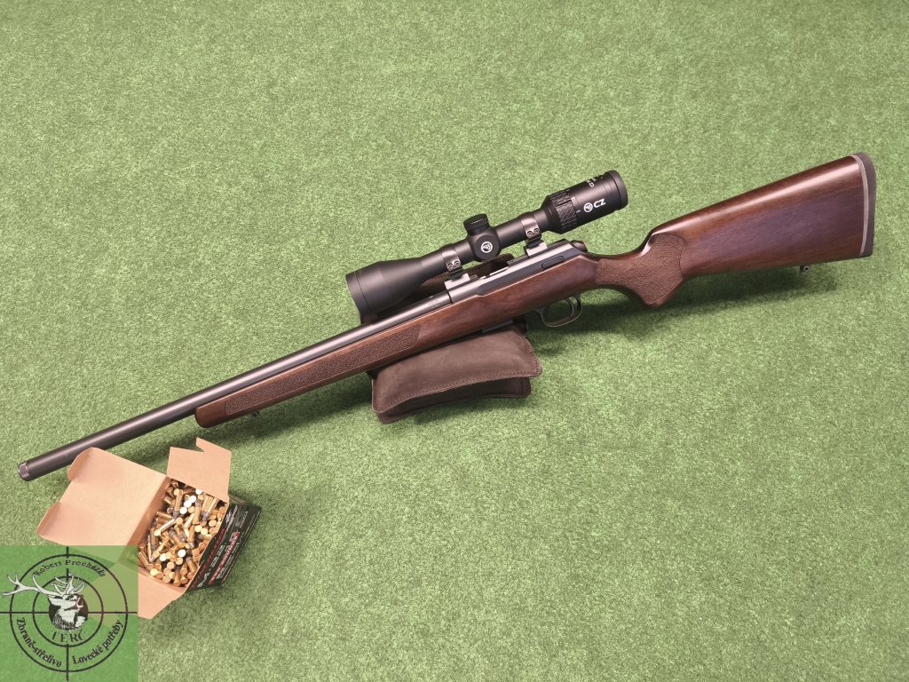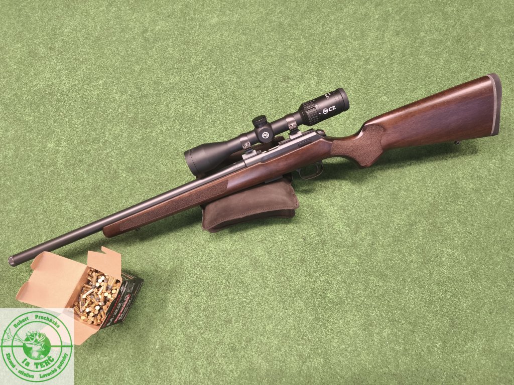 !!PŘIPRAVENÁ SESTAVA!! malorážka České Zbrojovky ve špičkovém varmintovém provedení v kombinaci s povedenou dřevěnou pažbou, CZ457 osazena zbrojováckým puškohledem CZ Rimfire 3-9x42 s perfektně ostrým obrazem - variabilní zvětšení s velmi tenkou záměrnou osnovou (poctivé skleněné čočky), velká kulička kliky závěru pro rychlejší a komfortnější přebíjení.