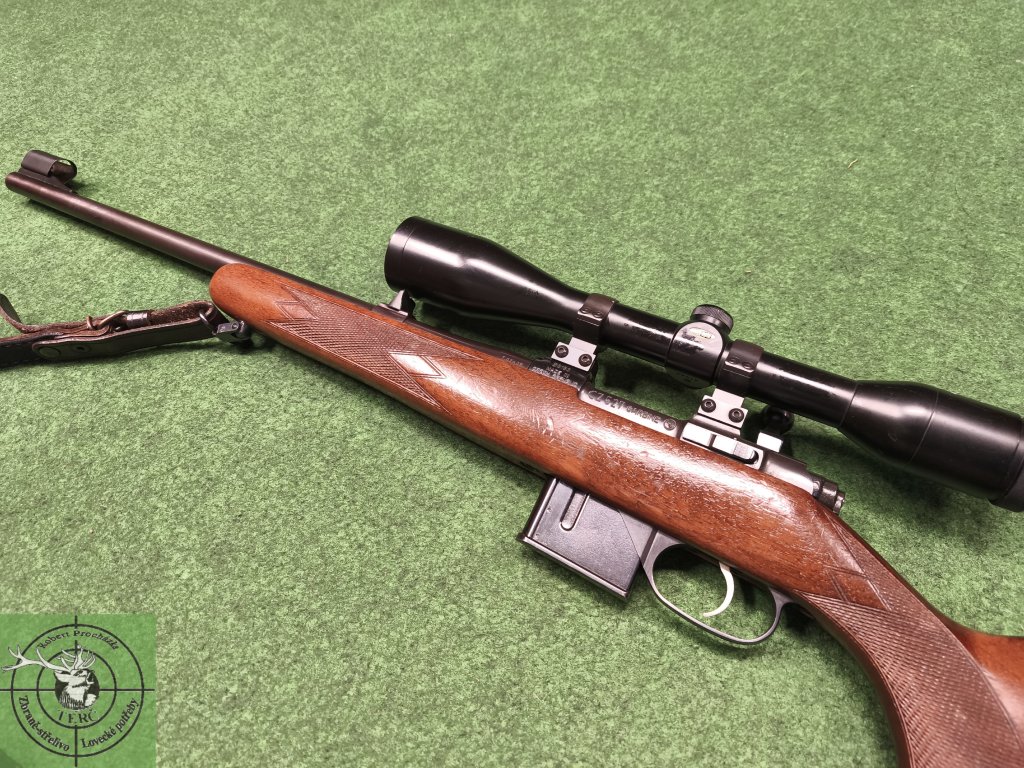 Kulovnice v dobrém stavu, mechanicky plně funkční. Pěkný čistý vývrt bez deformací. Pažba též v dobrém stavu, nepopraskaná, nese pouze standardní oděrky odvislé k věku zbraně. Na zbrani osazený puškohled Meopta Artemis 6x42 v dobrém stavu, pěkný čistý a ostrý obraz.