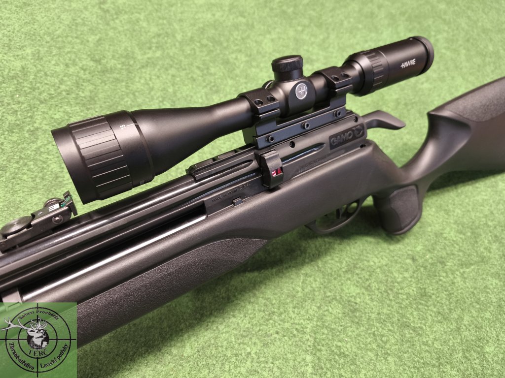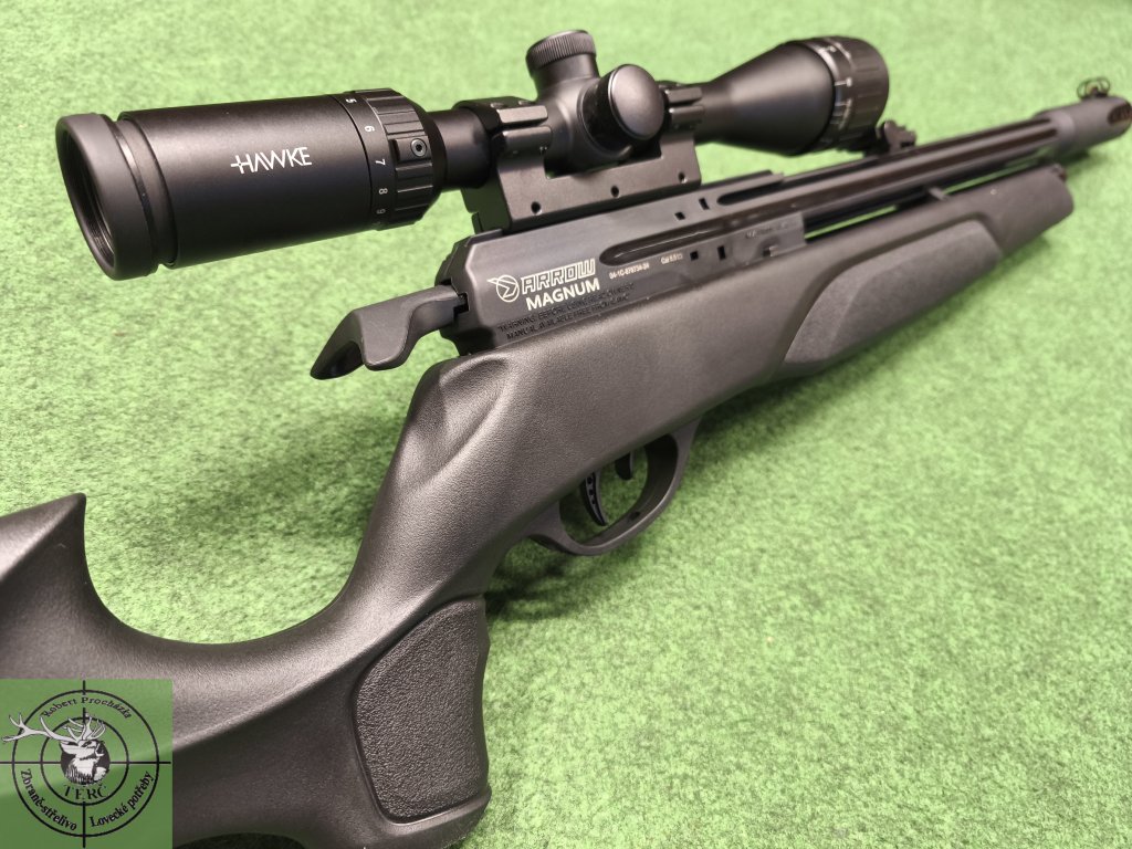 Sestavený a připravený set PCP větrovky Gamo Arrow Magnum 5,5mm 40J s puškohledem Hawke 4-12x40AO