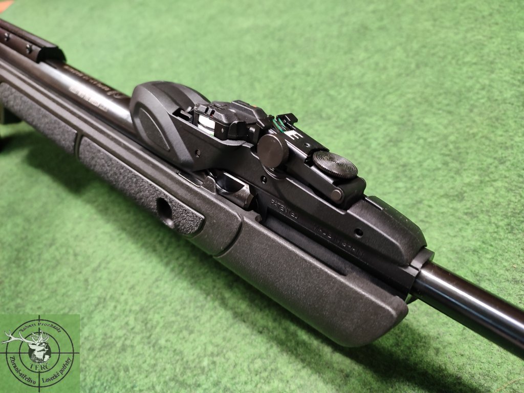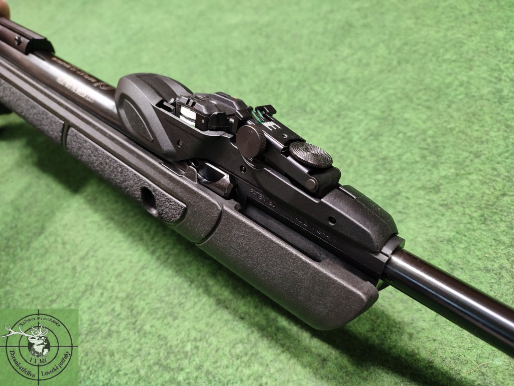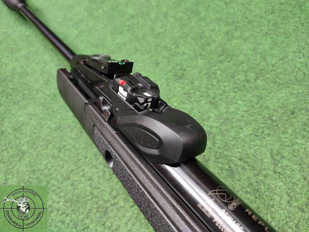 Pojistku proti náhodnému výstřelu zde tvoří manuálně ovládaná páčka u spouště. Pokud je páčka blíže ke spoušti, vzduchovku zajistíte. Pokud páčku posunete vpřed, dojde k odjištění a je možné stisknout spoušť pro výstřel.