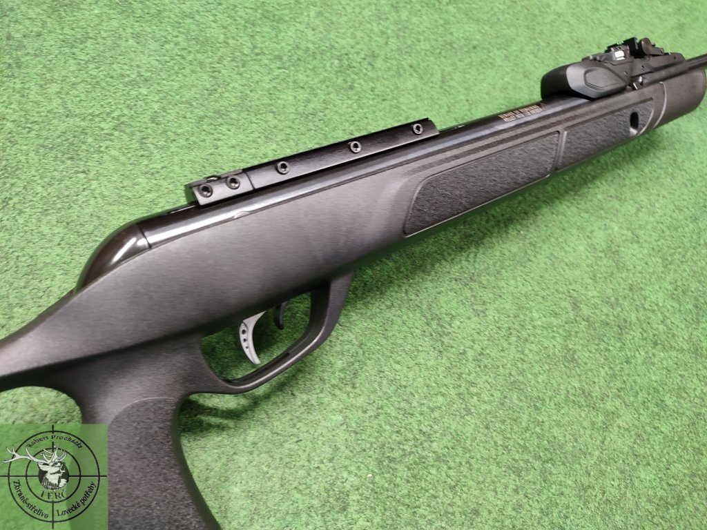 úsťová whisper brzda, plastová rovná pažba, 10ti ranný ležící zásobník, zdrsněné úchopové plochy, masivní botka, šína pro puškoled, pasivní pojistka, dvojpolohová spoušť