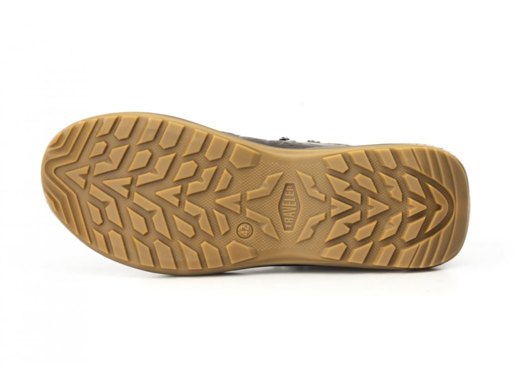 Všestranná bota, která se hodí na lehkou turistiku i do města. Svršek je vyroben z hladké hovězinové kůže Defender. Nový druh podešve Grisport Traveller má vnější "běhoun" vyroben z TPU (termoplastický polyuretan), který má hned několik zajímavých vlastností. Je velmi odolný proti oděru, neklouže, je lehký a skýtá měkké odpružení. Chůze v těchto botách jE jako v bavlnce.