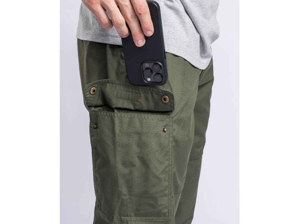 Klasické kalhoty Finnveden značky Pinewood vyrobené z materiálu TC-1200 ( 65%polyesteru a 35% bavlny). Její vlastnosti: nepromokne díky použíté impregnaci (vydrží však max 3 praní), po namočení rychle schne, je odolná vůči komárům atd. Tuto látku je možné impregnovat a prát v pračce. Kalhoty mají elastický pas a mnoho praktických kapes. Jsou velmi lehké a pohodlné.