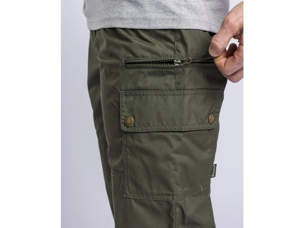 Klasické kalhoty Finnveden značky Pinewood vyrobené z materiálu TC-1200 ( 65%polyesteru a 35% bavlny). Její vlastnosti: nepromokne díky použíté impregnaci (vydrží však max 3 praní), po namočení rychle schne