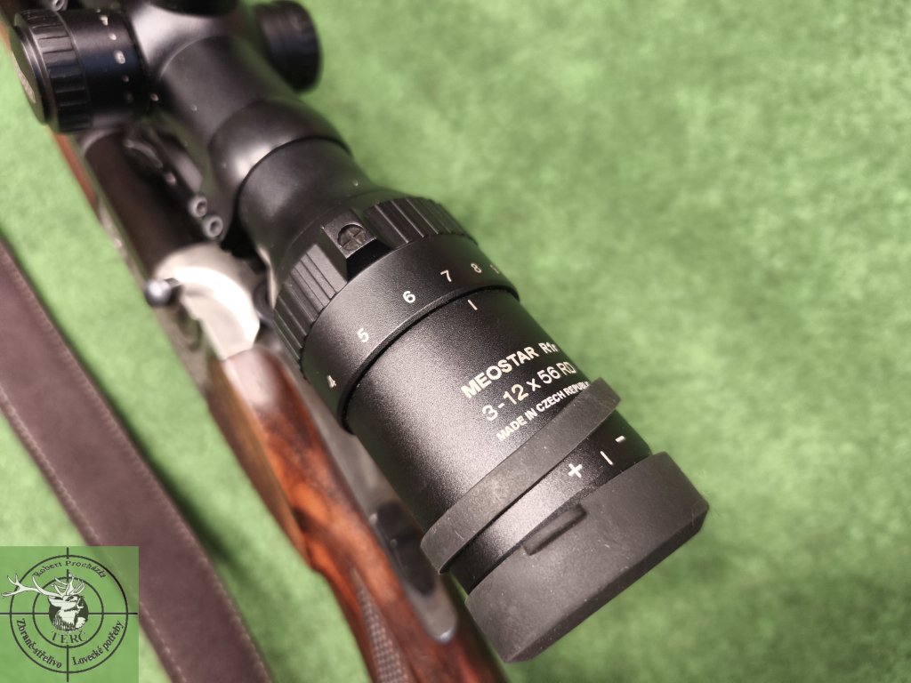 Merkel v nádherném stavu, mechanicky plně funkční, hlavně pěkné zrcadlově čisté. Perfektní neporušený brnýr bez oděrků. Pažba pro levorukého střelce, velmi pěkný stav, téměř bez známek používání, bez prasklin a vůlí. Na zbrani profesionálně vytvořený schvenk MAK, ve kterém je osazena Meopta R1r 3-12x56 4K - velmi pěkné čisté čočky, pěkný čistý a ostrý obraz.