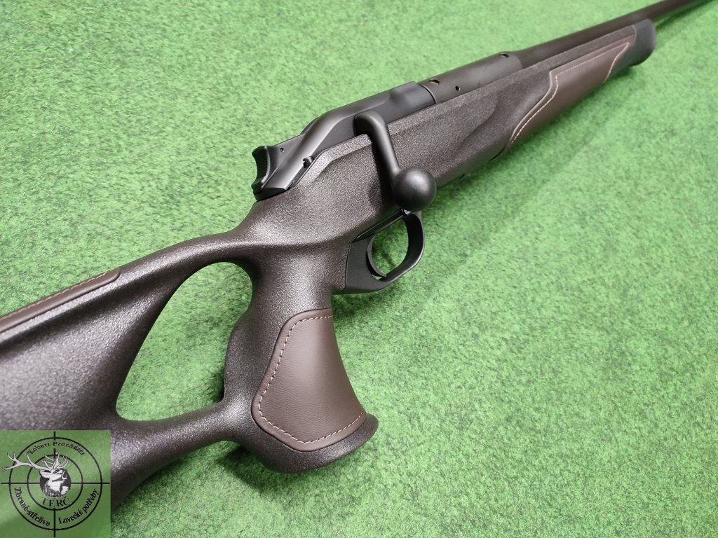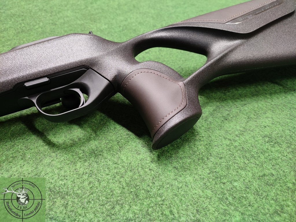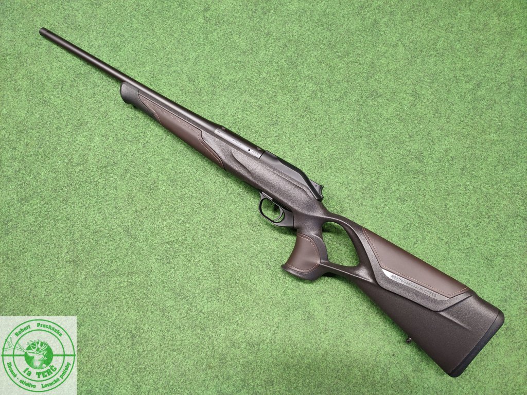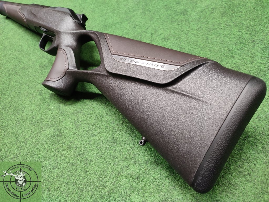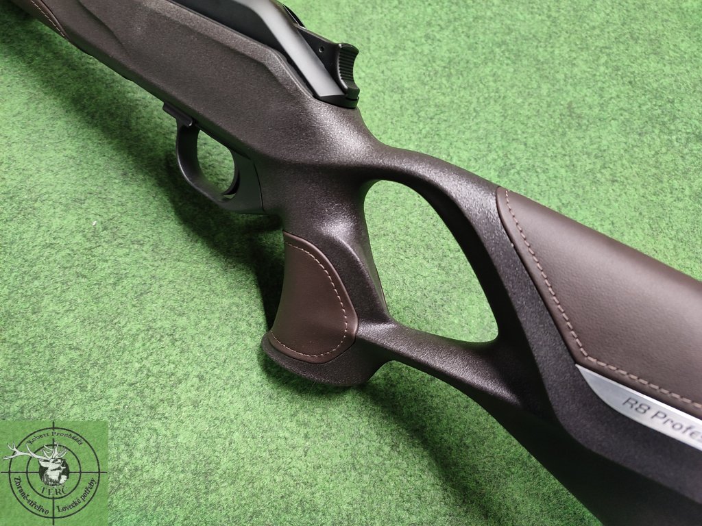 Blaser R8 Professional Success Leather - Kombinace tmavěhnědého plastu a výběrové luxusní kůže, precizně a detailně obšité na úchopových plochách. Provedení pro pravorukého střelce. Uvedené ceny jsou za kompletní složenou zbraň (pažba, hlaveň, kleština, závěr). V naší nabídce držíme stálou skladovou zásobu nejpreferovanějších ráží - hlavně jsou vždy bez miřidel a se závitem pro příslušenství.