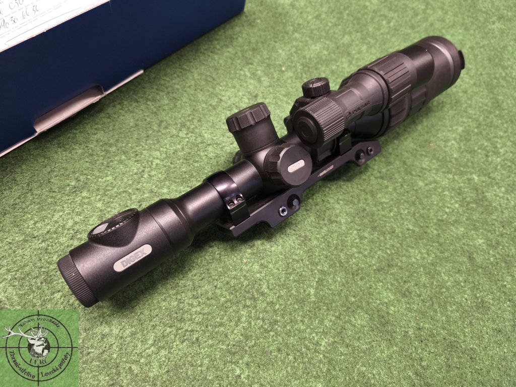 Digex je osazený v kvalitní montáži Innomount pro weaver systém. Stačí tedy nasadit na Vaši kulovnici a nastřelit.