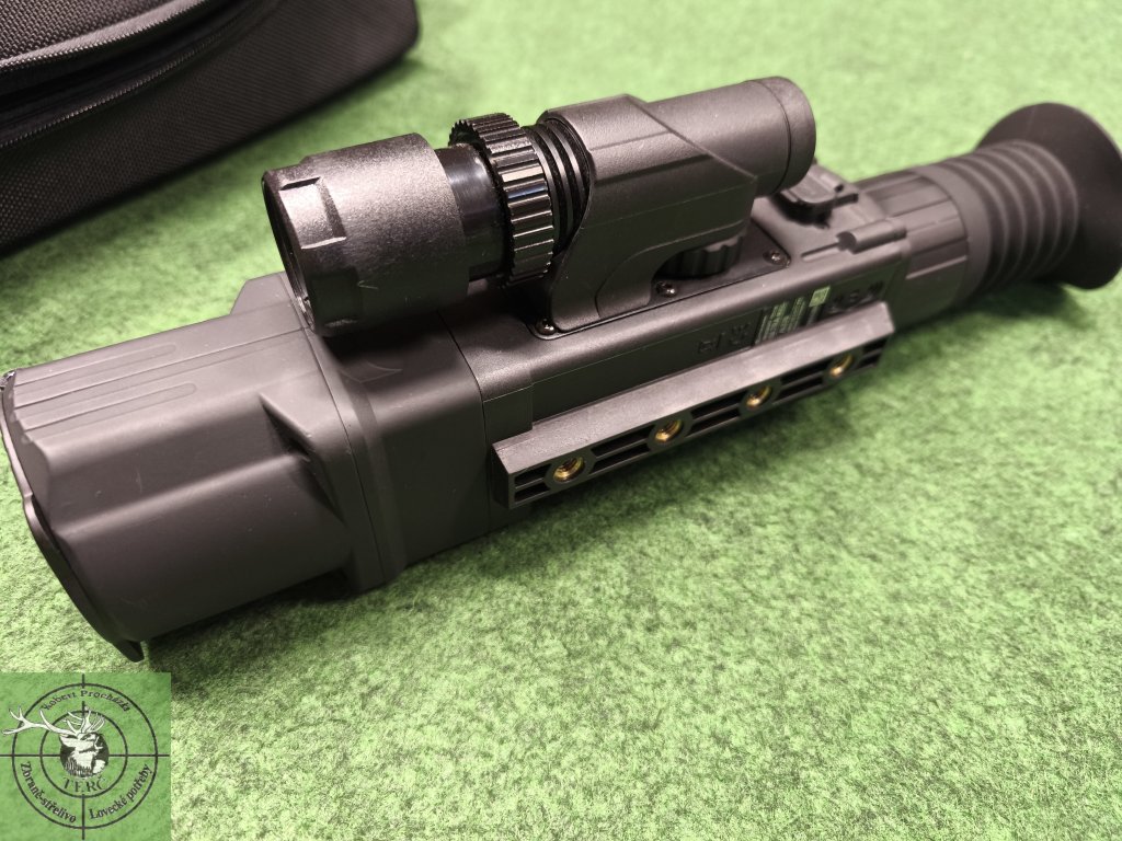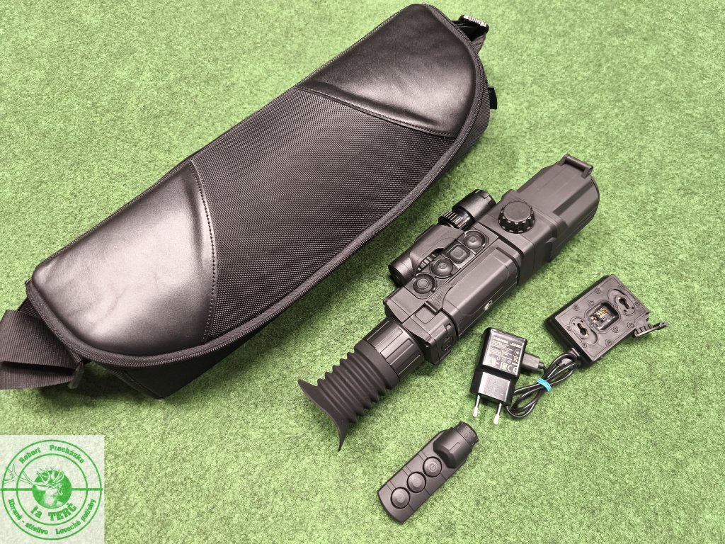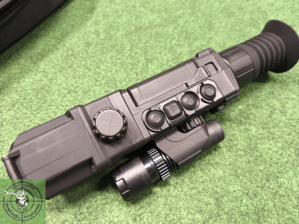Pulsar v pěkném stavu, minimální známky používání, velmi pěkné čisté neponičené čočky, dobrý čistý a ostrý obraz, display bez neaktivních pixelů. Součástí IR přísvit, nabíječka s adaptérem, originální futrál.