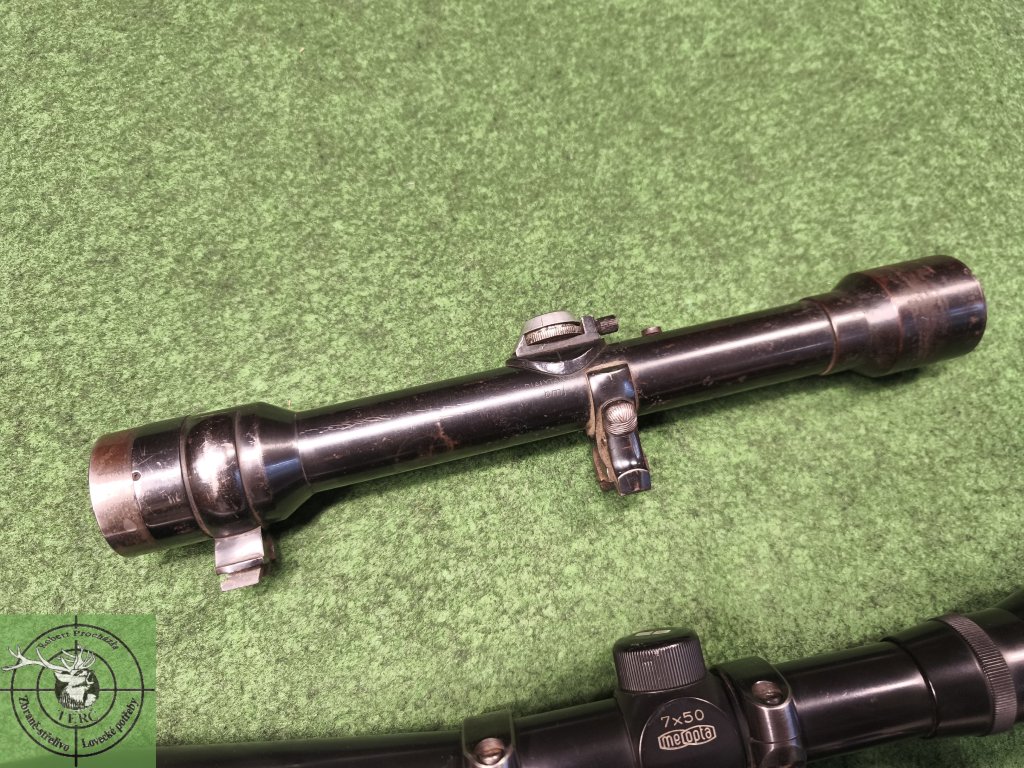 Ke zbrani relikvie - dobový puškohled s klapkovou montáží.